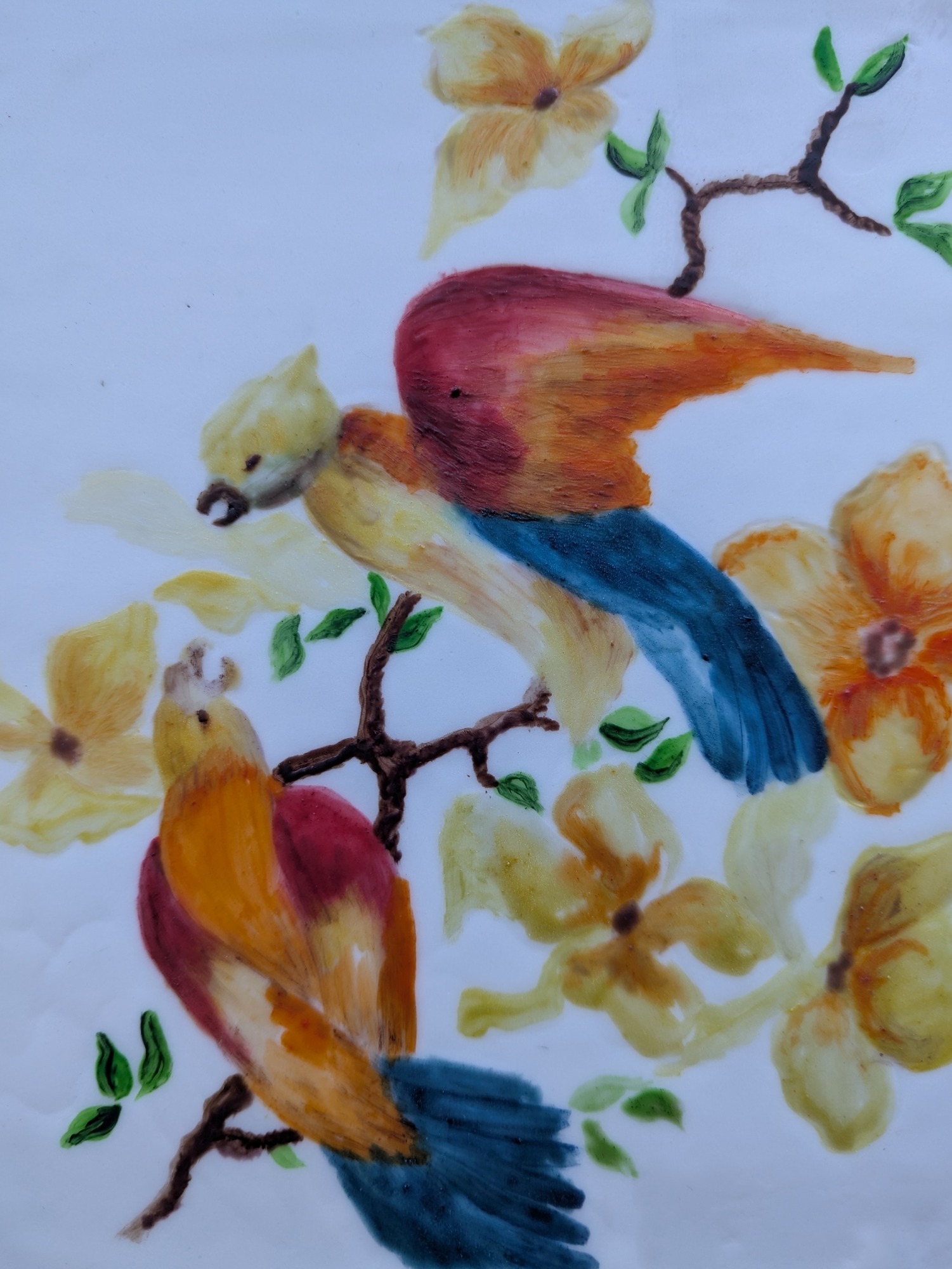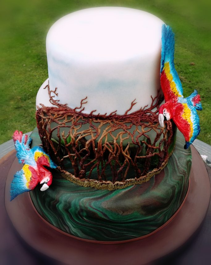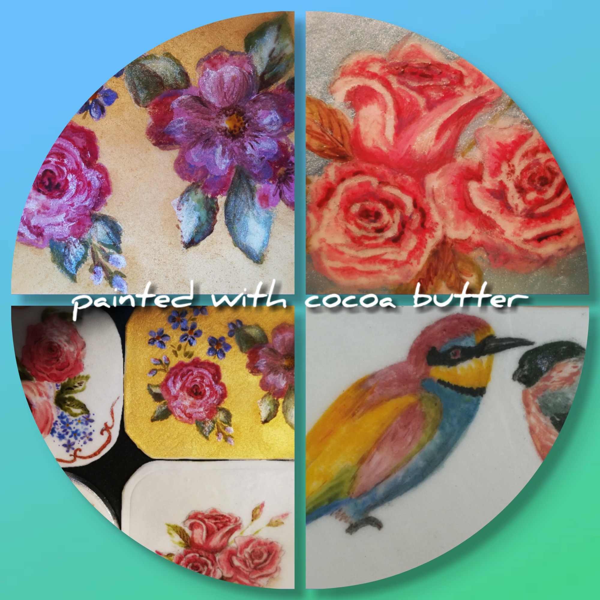 Edible art created with cocoa butter and edible food colouring